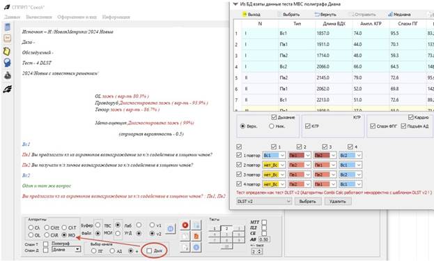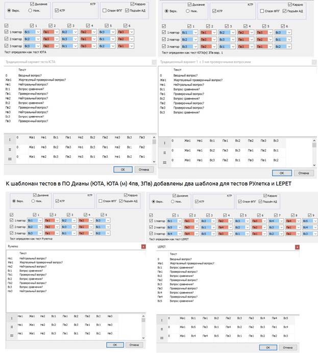 6. Для полиграфа "Диана" вместе с результатом работы алгоритма выводится список вопросов теста.