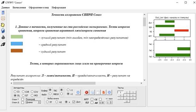 4. В программу добавлена возможность познакомиться с результатами оценки точности алгоритмов СППРП на обучающей выборке (российские полиграммы) и на тестовой выборке (американские полиграммы);