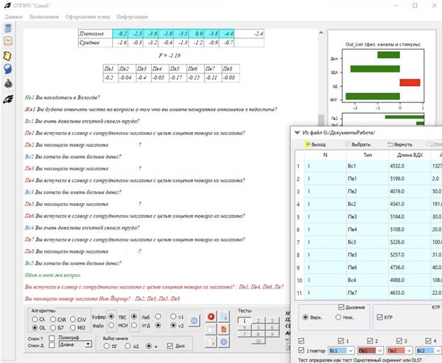 4. В программу добавлена возможность познакомиться с результатами оценки точности алгоритмов СППРП на обучающей выборке (российские полиграммы) и на тестовой выборке (американские полиграммы);