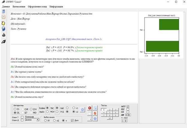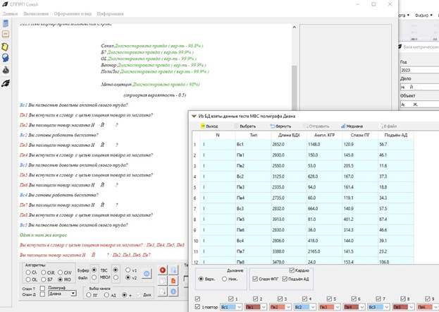 6. Для полиграфа "Диана" вместе с результатом работы алгоритма выводится список вопросов теста.